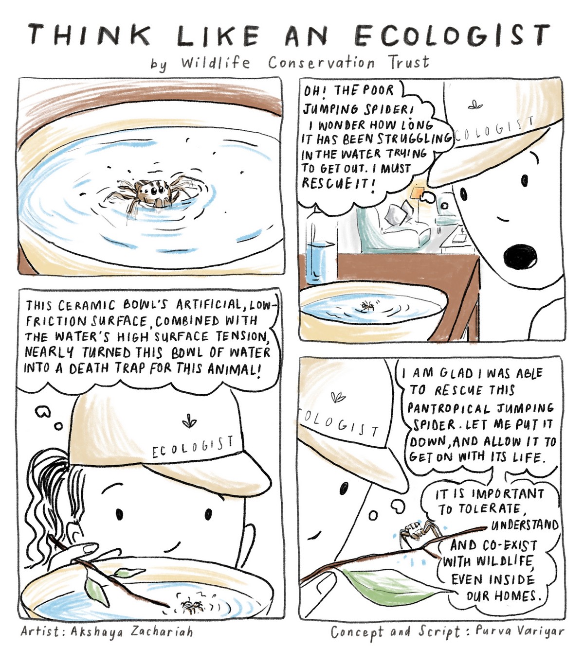 Dive into the ‘Think Like an Ecologist’ comic series by Wildlife Conservation Trust and begin viewing the natural world with more respect, appreciation, curiosity, and sensitivity. Enjoy reading the comic series and feel free to download and share them widely.