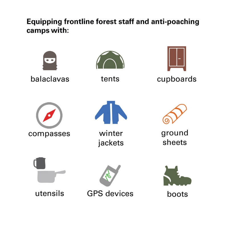 WCT equips patrolling camps with up various essential items such as solar charging units, water purifiers, first aid kits, walkie-talkies, binoculars, compasses, tents, boots and other items.