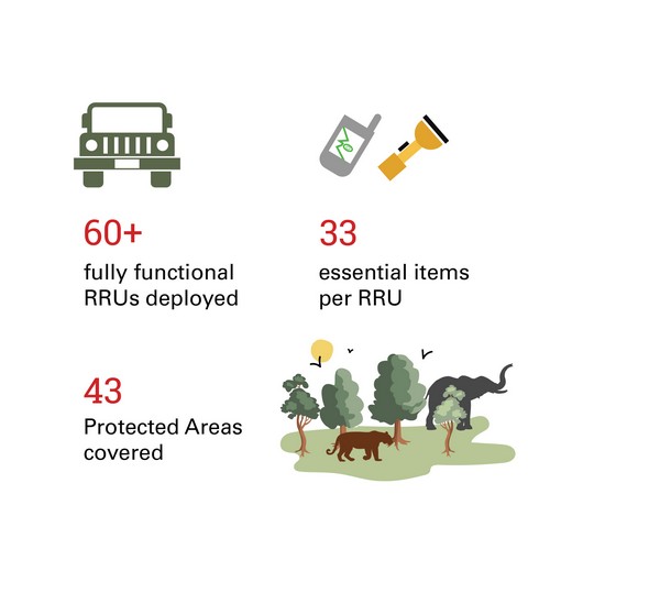 • Improving mobility and living conditions of the frontline forest staff is therefore paramount to their physical and mental wellbeing as well as the protection of India’s Protected Areas.